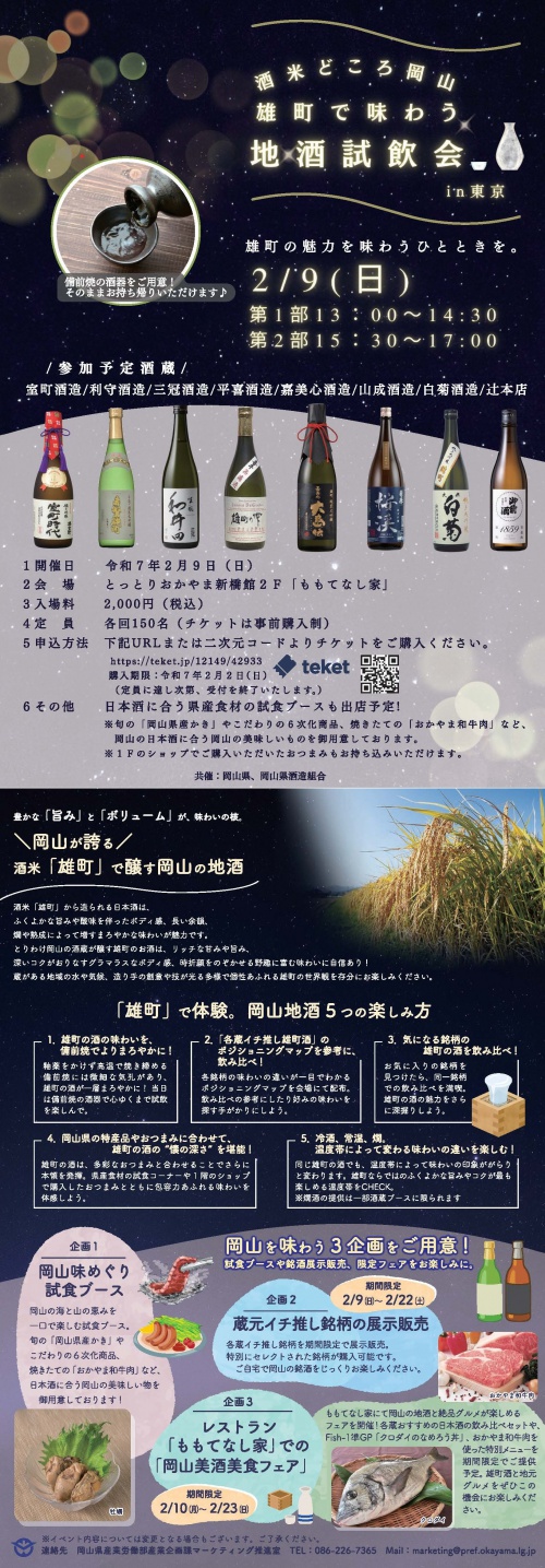 「酒米どころ岡山 雄町で味わう地酒試飲会 in東京」を開催します!